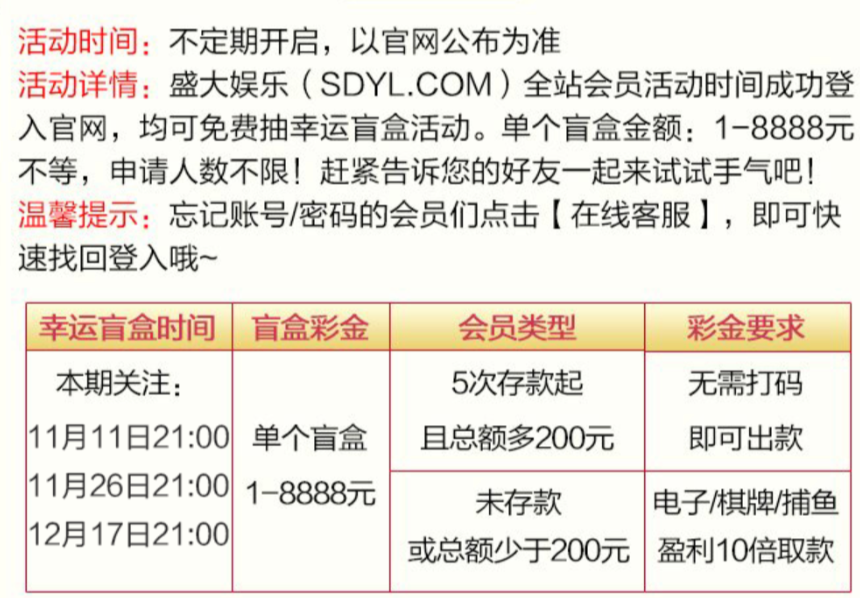【盛大娱乐】回馈+盲盒