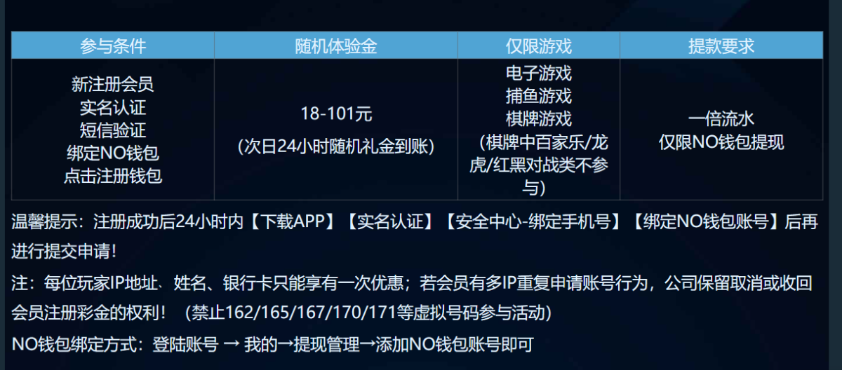 活动详情:注册绑定no钱包,最低18