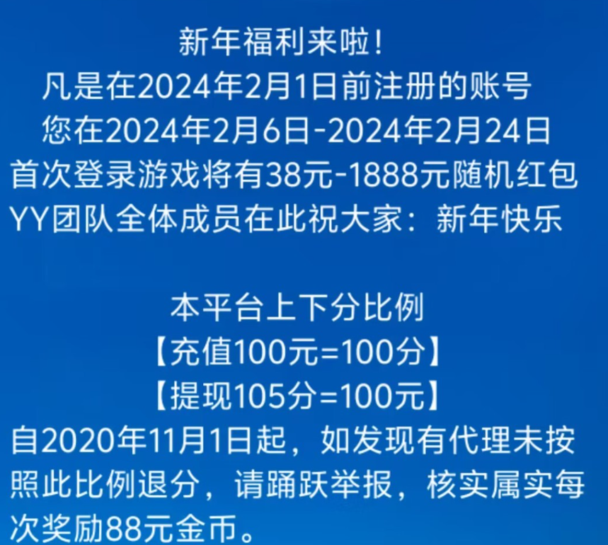2/1之前注册的,2/6登录随机回馈38彩金
