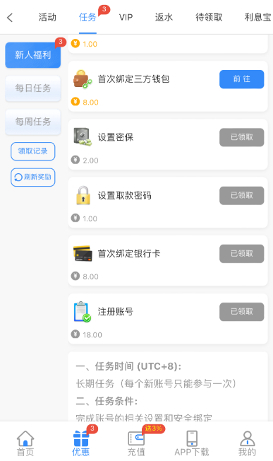 活动详情:新人任务秒领18 其他任务一共领了29,注册直接点任务领取 没有就是黄了